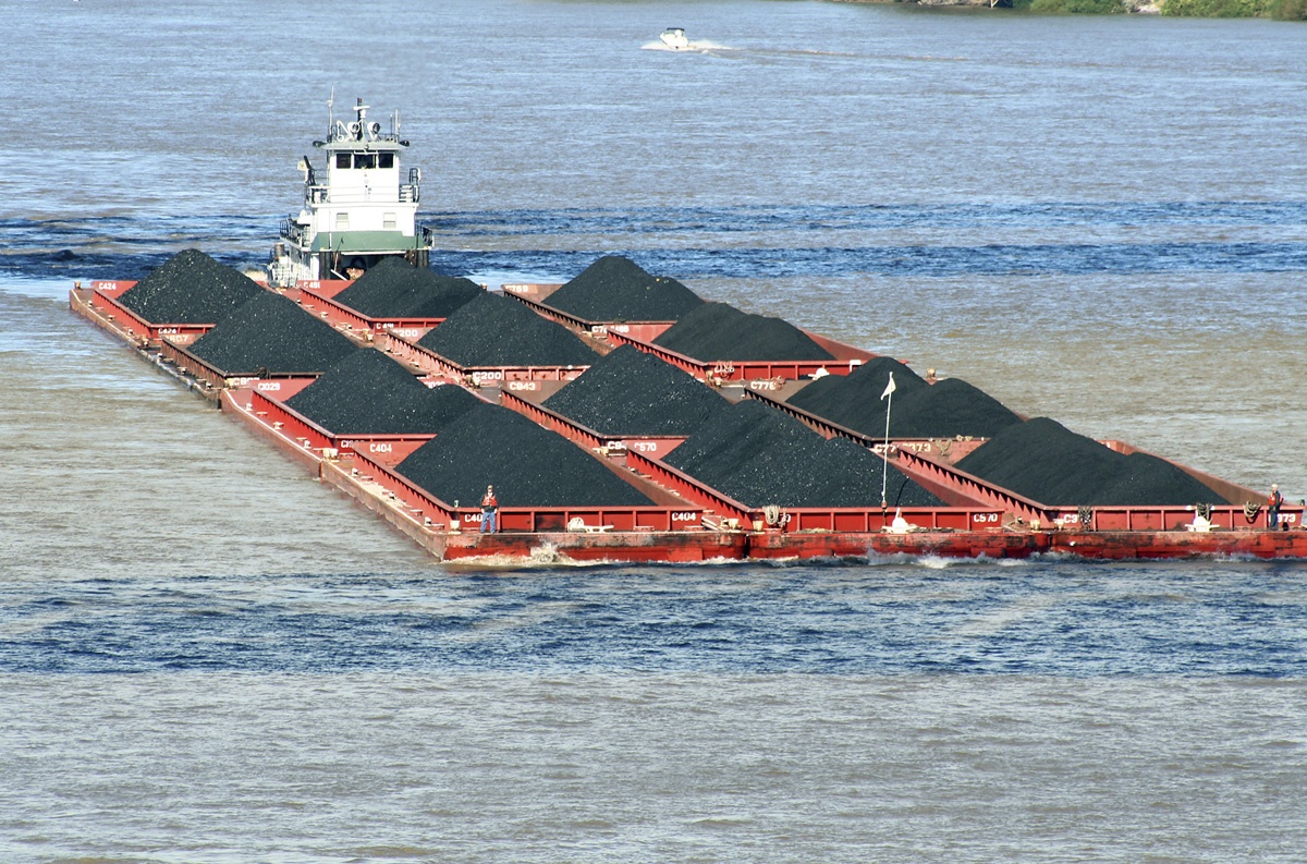 Each barge holds about 1,500 tons of cargo. That means this 12-barge tow carries the equivalent of 180 rail cars, or nearly two 100-car unit trains—a fact the towboat companies would like you to ponder the next time you’re sitting at a crossing waiting for a train to pass.