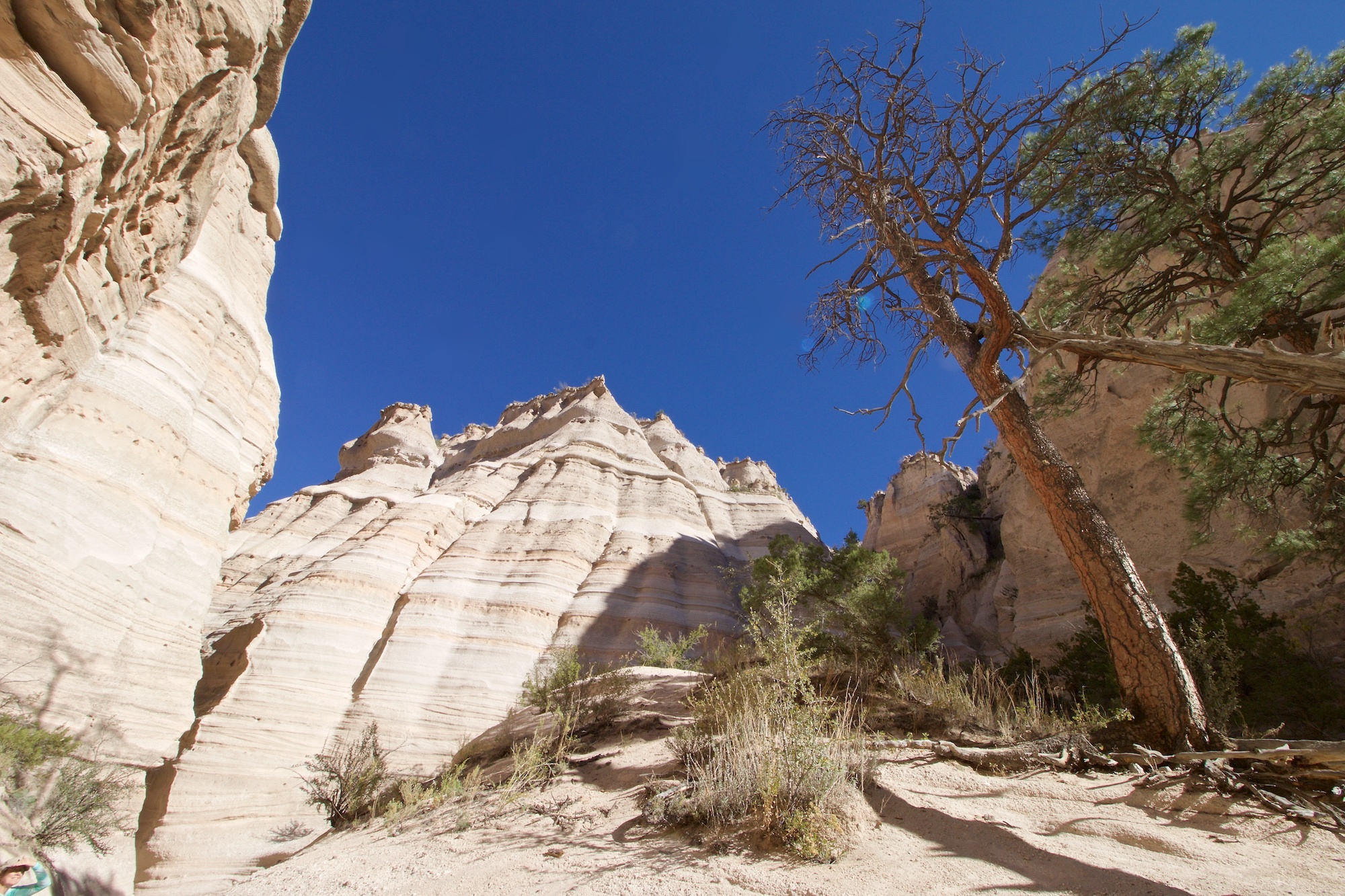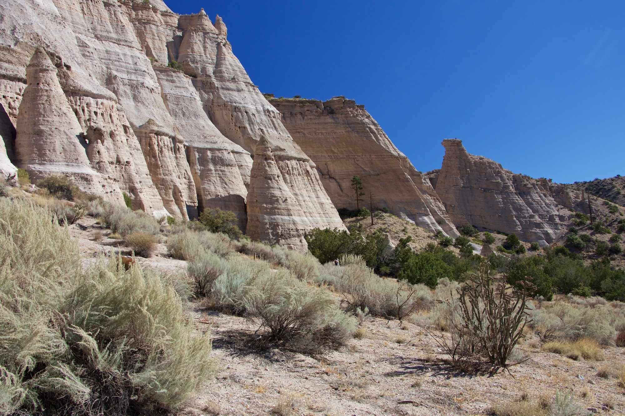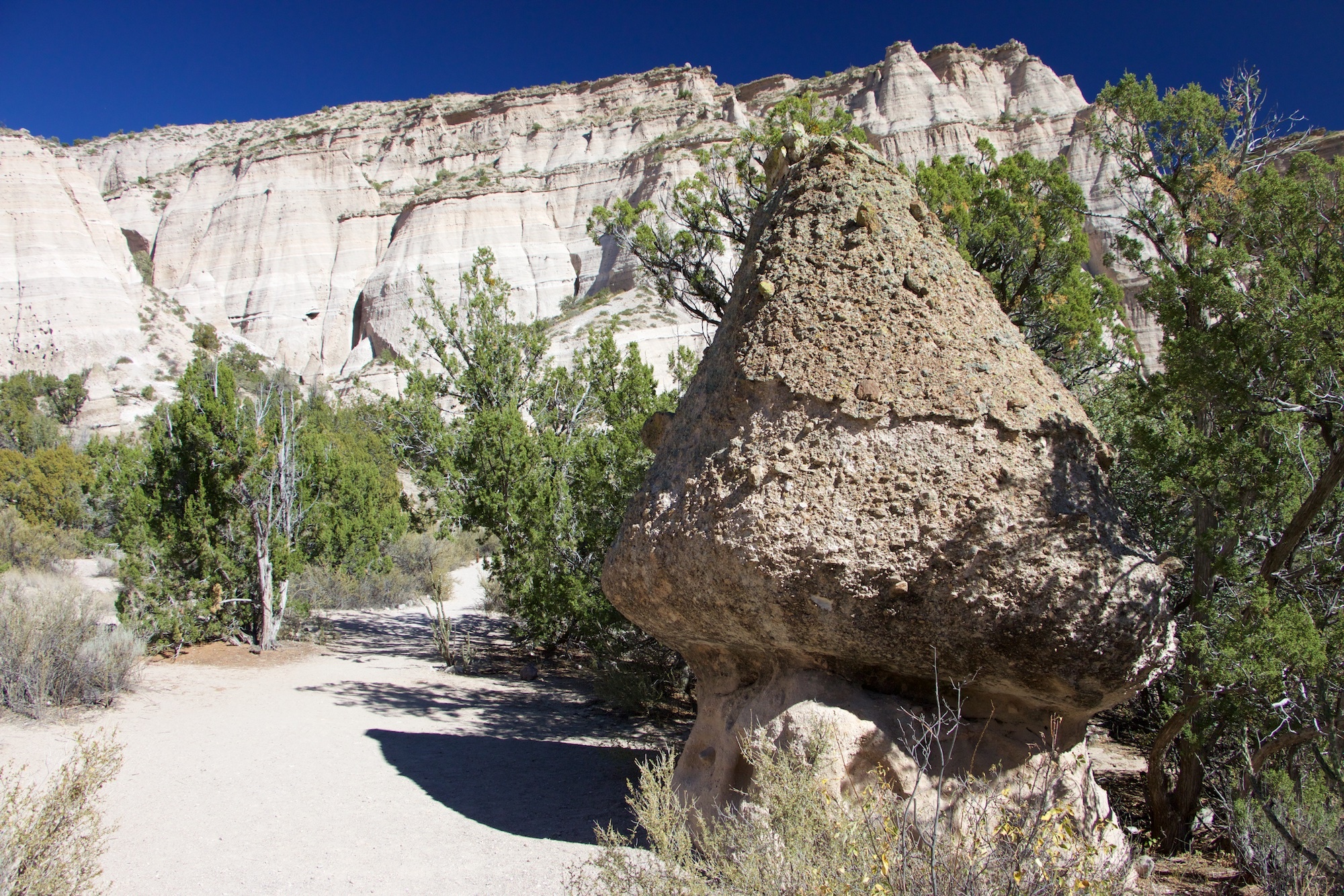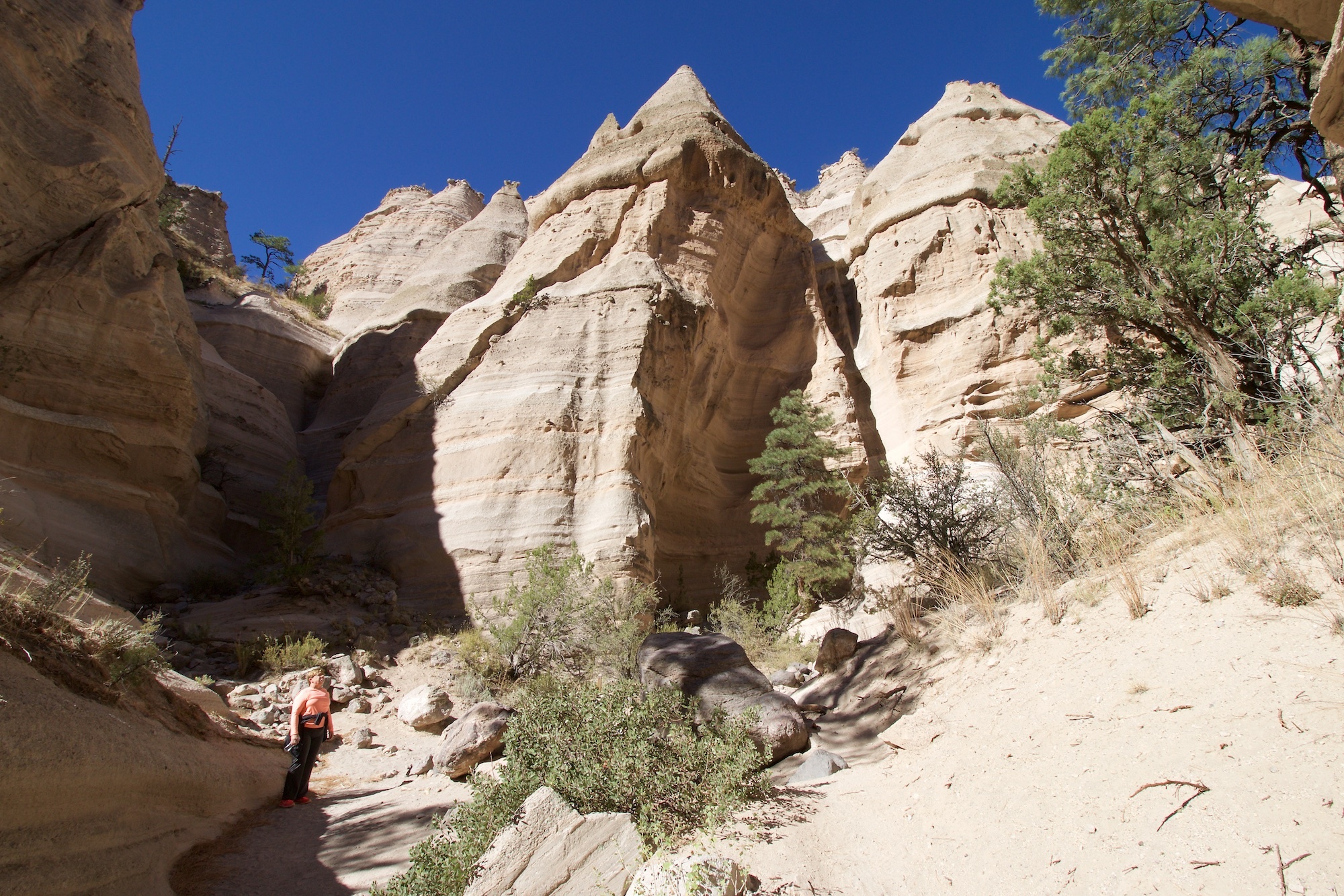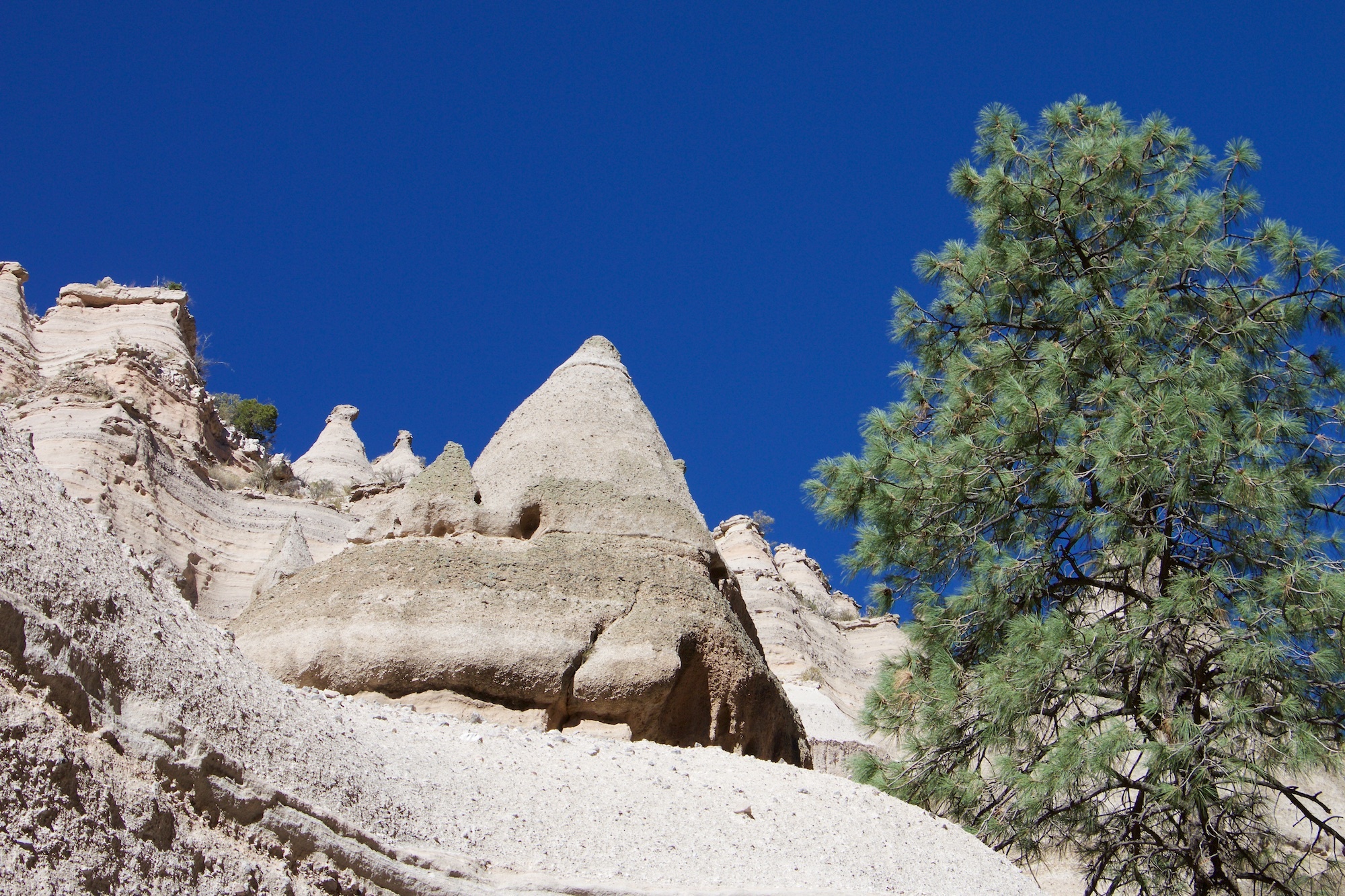 One of the monuments was Kasha-Katuwe Tent Rocks National Monument in northern New Mexico, about 25 miles west of Santa Fe. Kasha-Katuwe—which means “White Cliffs” in the native Pueblo language—is an area of bizarre conical rock formations, created from massive volcanic eruptions in the Jemez Mountains some 6-7 million years ago. The eruptions left layered pumice, ash and tuff deposits up to 1,000 feet deep, which gradually eroded over time to form the tent rocks and canyons.